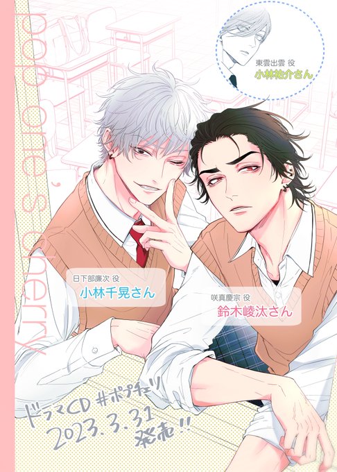 📢ドラマCD『pop one's cherry』 2023. 3. 31発売決定です🍒💿 咲真慶宗役を鈴木崚汰さん、 日下部廉次役を小林千晃さん、 東雲出雲役を小林裕介さんに演じて頂きます🙏🏻✨ ご予約も始まってます! よろしくお願い致します🥹🤝 bit.ly/3AquLGr #ポプチェリ