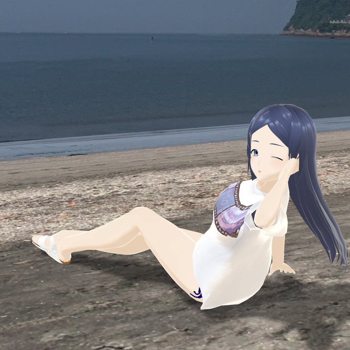 前に #fumifumi_v を触っている時に作った画像、あげてなかったみたいだ 昨日は #いい風呂の日 だった、ということでひとつ これどこだったかな、群馬の方だったと思うんだけど… #ポンあーと #VRoidStudio