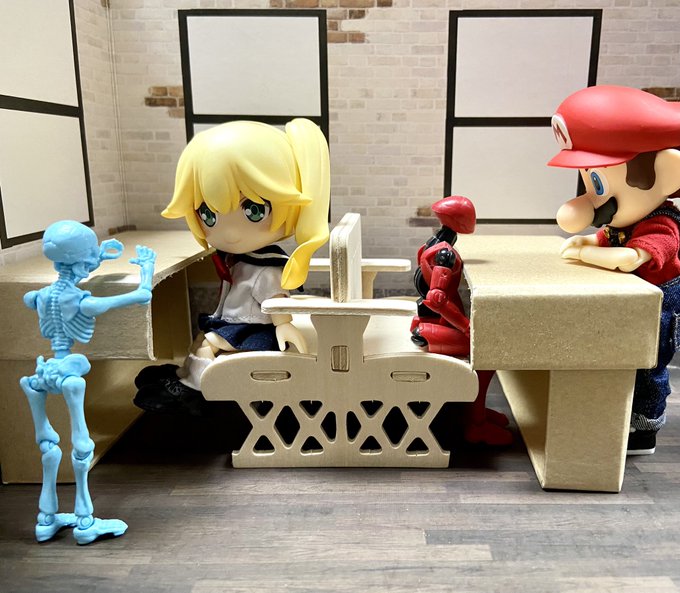 皆さん「些細なことが犯罪になるかも!? 気をつけましょう」な授業を成歩堂先生に教えてもらっています #ねんどろいどどーる #ピンキーストリート #ポーズスケルトン #キューポッシュ #むぎコラさん #素ボディ