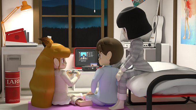 童子さんの家で推理アドベンチャーゲーム「キャットピア連続開封事件」をプレイしているやまはちゃんとびわです。 ツインファミコンの3Dモデルを3D Warehouseにアップしました。 DLはこちら 3dwarehouse.sketchup.com/user/003044112… #3DCG #SketchUp #イラスト #ポートピア連続殺人事件 #ツインファミコン