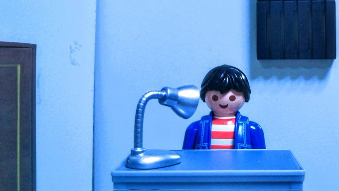 #おもちゃ撮影会 お題「サスペンス」 (申し訳有りません、大遅刻です) サスペンスドラマをゲーム化した ファミコンソフト 「ポートピア連続殺人事件」 の、取調室の再現。 #ポートピア連続殺人事件