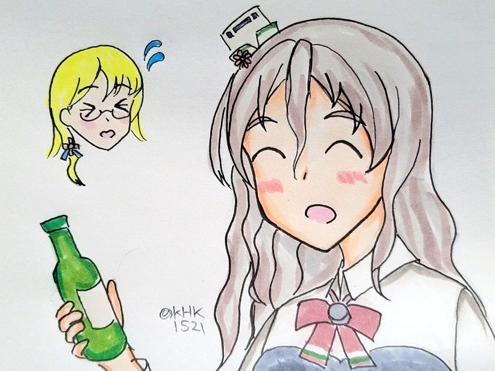 ポーラさん「ノーザンプトンさんも飲みますよ🍷」 ノーザンプトンさん「ヒエー😖」 #艦これ版深夜の真剣お絵描き60分一本勝負 #艦これ版真剣お絵描き60分一本勝負_20211205 #ポーラ進水日