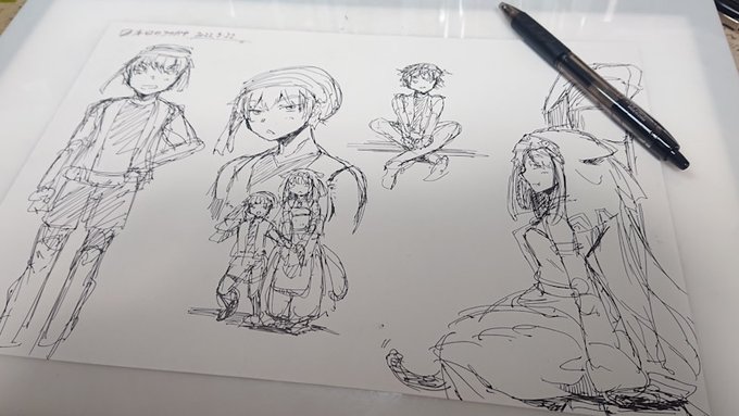 【本日のラクガキ(作業環境)】本日のラクガキですが上質紙に100均のボールペンで描いてみました。100均とはいえプラチナ万年筆製だからか描きやすかったです。 #民族衣装 #ポールペン #少女 #絵描きさんと繋がりたい #アナログ #ラフ #設定画 #落書き好きさんと繋がりたい