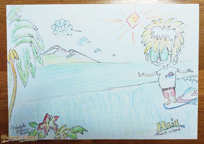 サーフィン(サーファー)のキャラクターを描いてみた。 nobuyukioshima.art/2022/10/07-mai… #サーフィン #サーファー #ロングボード #ロングボーダー #ハワイ #キャラクター #アニメ #イラスト #絵 #絵画 #アート #サーフアート #Maiasurfislanmd #マイアサーフアイランド #NobuyukiOshima #大嶋信之