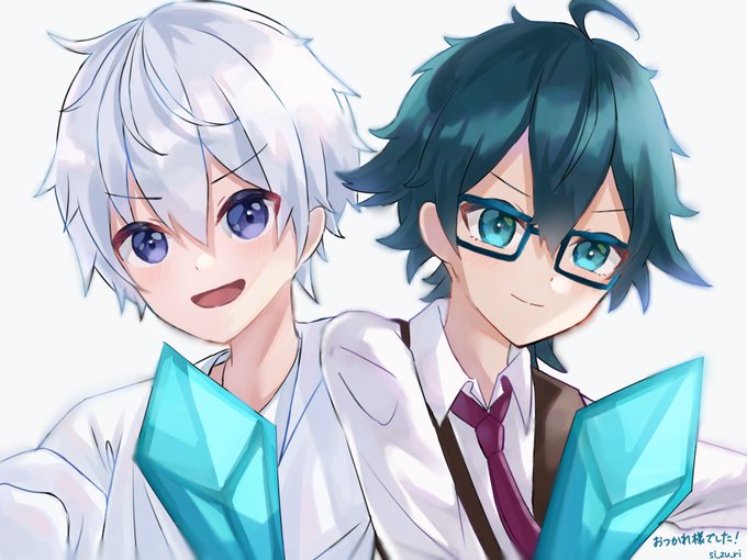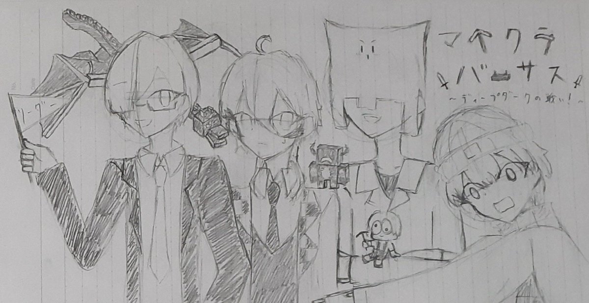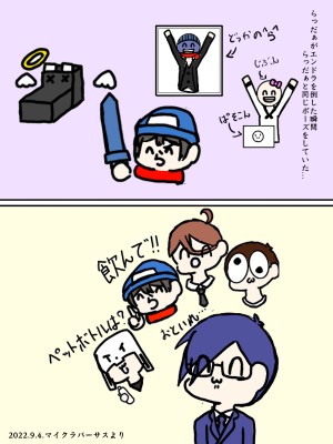 #マイクラバーサス での黛くん(Dチーム)とじゃぱぱさん(Cチーム)の静かな和解。その後の交流も平和で面白かったです。#灰画 #からぴち #ふうはやあーと #ぷちひな #ぷっちーのイラスト #まつひな伝説アート