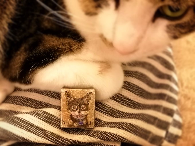 神戸発祥のマイクロキャンバス🎨 初めて描いてみました。ホント小さいです。 神戸北野異人館街にて¥500からのオークション形式。私の作品の売上は全額北野地域猫に寄付します。 #マイクロキャンバス