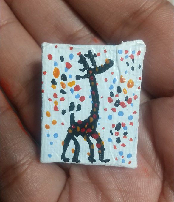 giraffe部分ディテールのマイクロブローチ✨メロディなnuanceにてcompleteですよ😃珈琲にてコーティング仕上げいつもの如くしましたので、モキュモキュピカピカなブローチなってますですよ☺️ #マイクロキャンバス #miniature #minimum #イラスト #creator #giraffe #exhibition #きりん #artwork #絵