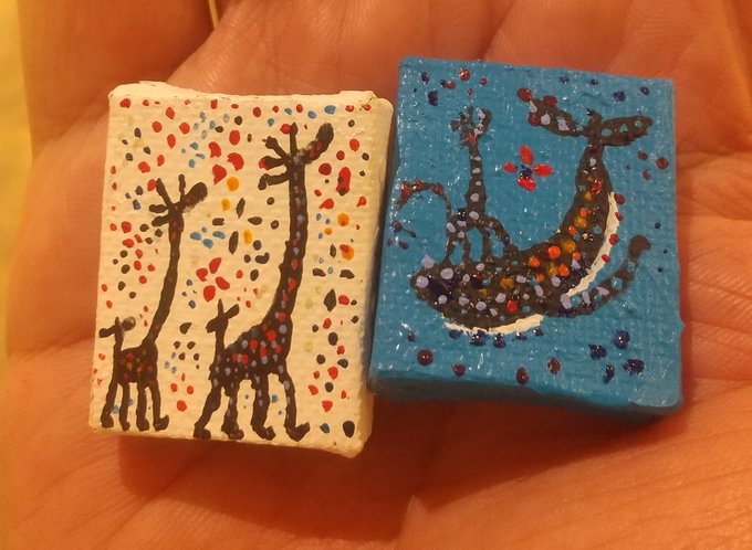 前夜アートフェスティバル、いよいよ明日から開演ですね😃明日はマイクロキャンバスに描こうワークショップ、開催しますよ✨12時から夕方くらいまでワクワク😃💕参加してくださった方全員にSpecialな特典付けました、お楽しみに😊 #art #イラスト #paint #マイクロキャンバス #ブローチ #miniature