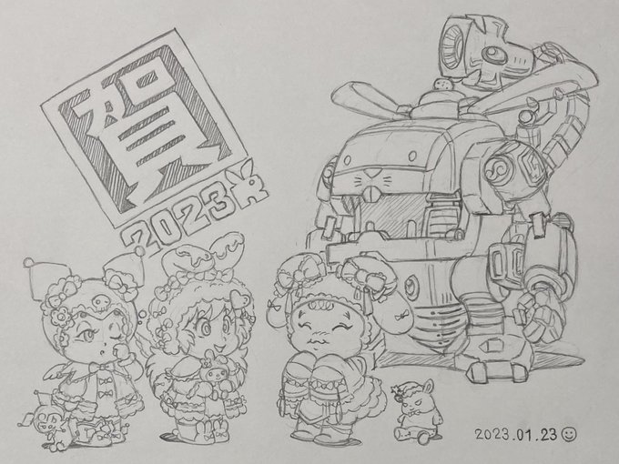 せっかく卯型の聖ボットを考えたので、いまさらですが年賀イラスト落書きしました。今年もよろしくお願いいたします🐰 そういえばマイメロってうさぎだなぁと気付いたので十字架天使、イージー、照光で #ビックリマン× #マイメロ コラボです。照光は巻き添え喰らってます。 twitter.com/4ooydhrbavq5pt…