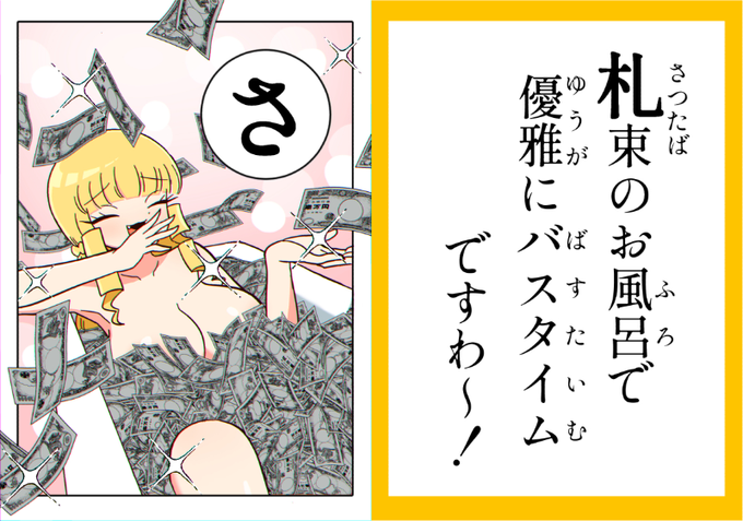 今年の夏はジャイアントお嬢様とマウントセレブ金田さんがお嬢様コラボ! 「おじょうさま」因んだ文章とイラストを毎日交互に公開 最終日にはコラボ漫画をお互いに公開します! 5日目「さ」 札束なんて見飽きましたわ~! #真夏のお嬢様コラボですわ #マウントセレブ金田さん #ジャイアントお嬢様