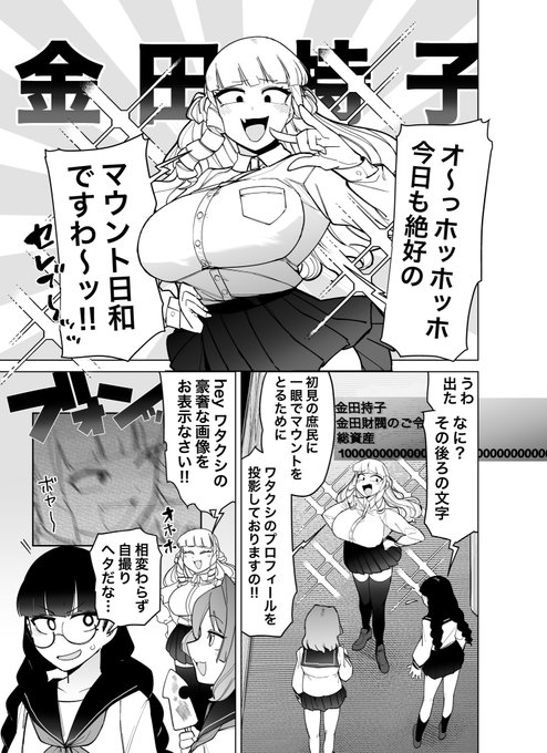 「マウントセレブ金田さん」×「ジャイアントお嬢様」 ✨お嬢様コラボ✨ 「おじょうさま」に因んだ文章とイラストを交互に公開‼️ 最終日にはコラボ漫画を両者公開予定です💃 6日目「ま」 マウント勝負なら負けませんわ #真夏のお嬢様コラボですわ #マウントセレブ金田さん #ジャイアントお嬢様