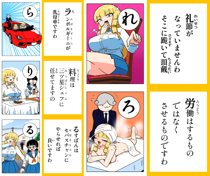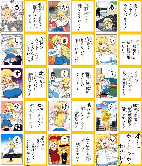 マウントお嬢様かるた50音全て完成しました! 半年以上かかりましたが、皆様から頂いた文章や応援が非常に励みになりました 改めてありがとうございました!💰✨ #マウントセレブ金田さん