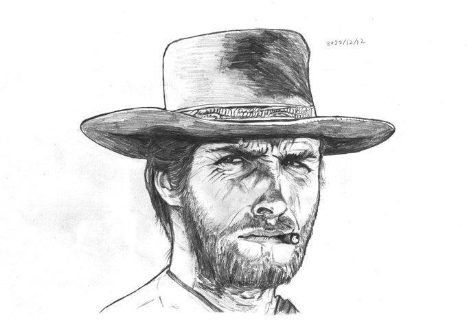 『続・夕陽のガンマン 地獄の決斗』よりブロンディ。自分で「俺、いいひと」とのたまうが、本編では決して善人じゃなかったよ(笑) #イラスト初心者 #模写イラスト #模写 #シャーペン #シャーペン画 #アナログ #マカロニウエスタン #続・夕陽のガンマン