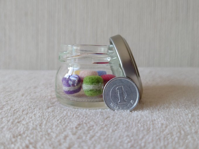 【ミニマカロンビン入り羊毛アロマディフューザー】 ビンの中にあるミニマカロンへ数滴 精油(エッセンシャルオイル)を垂らしてお楽しみいただけます💞 minne.com/items/29280958 精油1mlをオプションでお選びいただけます🌟 #minne #羊毛フェルト #マカロン #アロマディフューザー #ミニマカロン