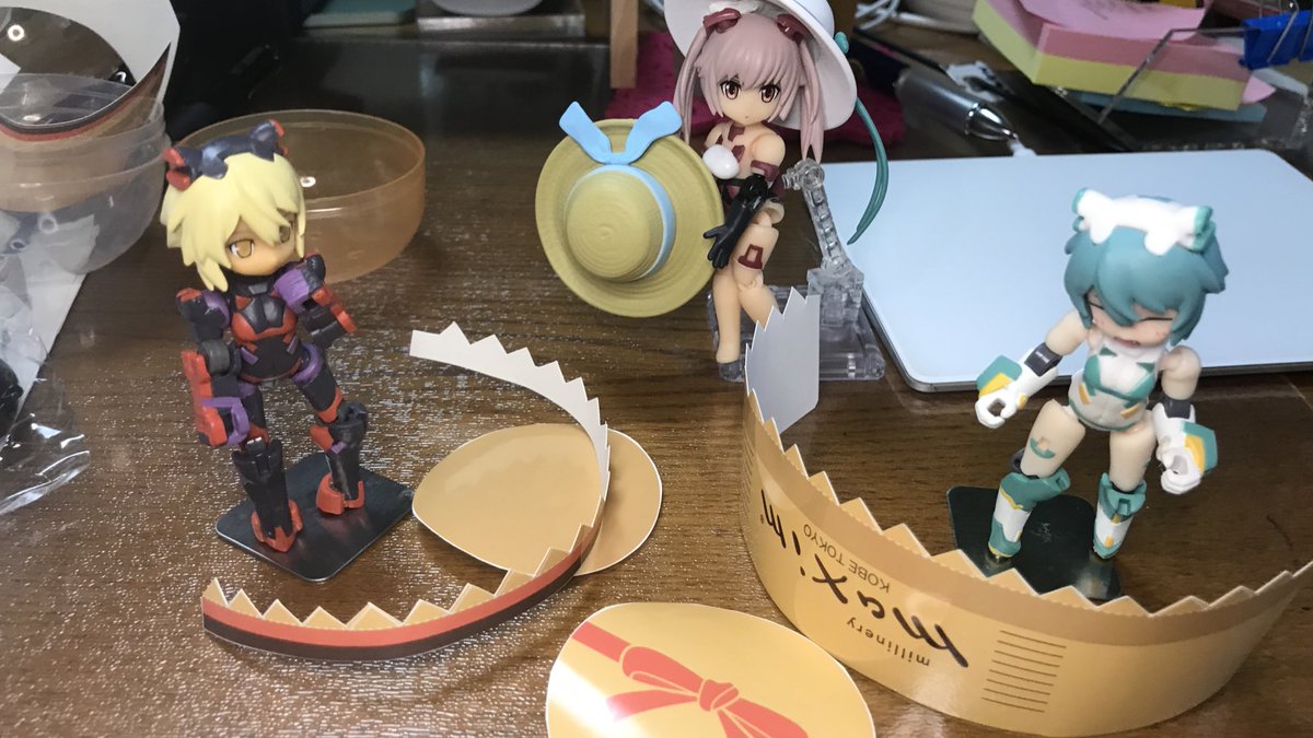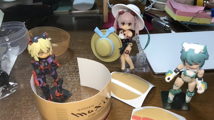 今日の娘ッコ達。 帽子の箱を作る。 切って貼るんだけど、設置面が少な過ぎて上手く貼れない…。 そして、ソフトハットと麦わら帽子以外は入らないようです。 #デスクトップアーミー #マキシンミニチュアコレクション