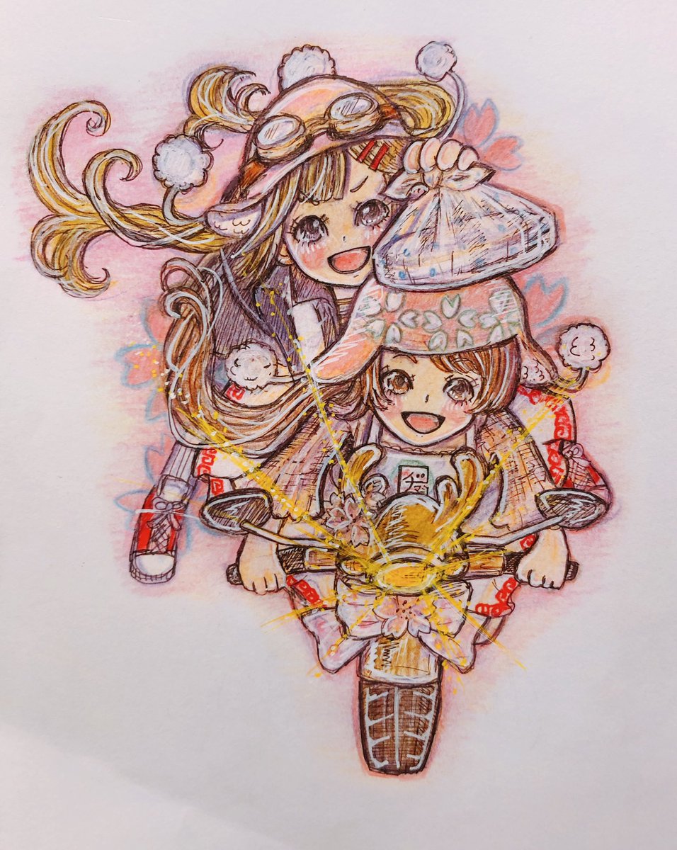#マギレコエアお花見 「ちわーす!!万々歳でーす!! 中華オードブル持ってきたぞ!!」 「鶴乃フェリシアとスーパートナカイ2号さん」を参加させてください ※周りのピンクの部分は切り抜いて構いません。よろしくお願いします✨✨