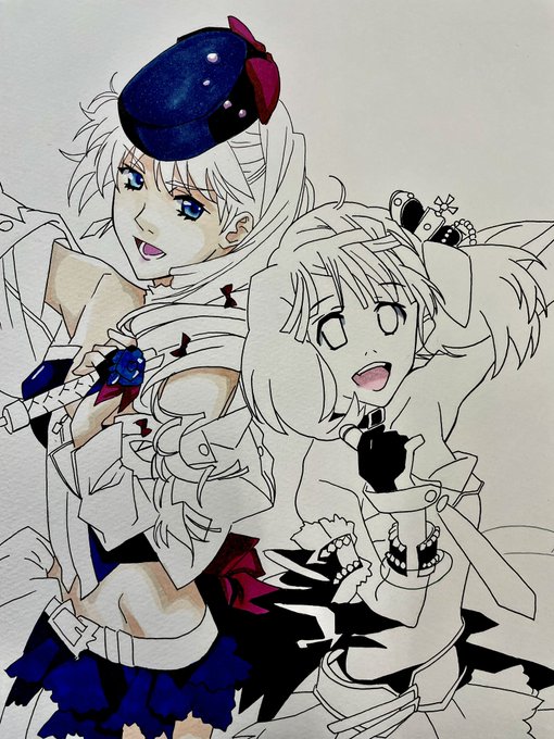 今朝のペン入れー! って程ペン入ってません…😅 #イラスト #模写 #マクロスフロンティア #マクロスF #シェリル・ノーム #ランカ・リー #イラスト拡散 #フォロワーさんの推しを描きたい #フォロワーさん増やしたい #イラスト好きさんと繋がりたい