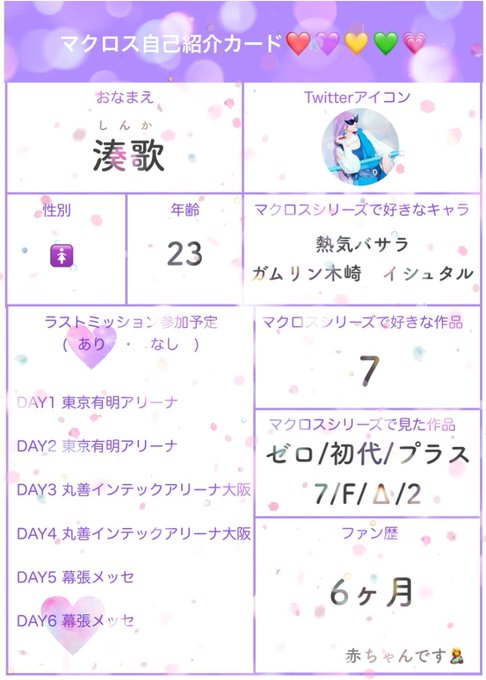ワルキューレラスミに行けることになったので作りました😭✨ ライブ初めてなのでたのしみ! Δお勉強中で7中心に色々好きな初心者です🔰 レイヤーさんのお友達欲しいです👗 #マクロス自己紹介カード