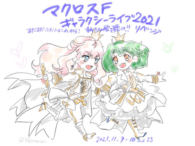 やっぱこの衣装描いてみたくなっちゃって江端さんのイラストと睨めっこしてた。雑な絵で申し訳ないのだけれど。 もう神。昨日2人の歌を生で体感できたことが奇跡だと思います。あの場所にいた全ての人に感謝したいです。ありがとうございます。また会えるといいな!#マクロスFギャラクシーライブ2021