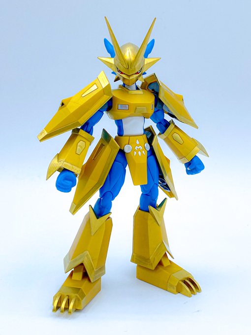 私にはコレが限界だァアア! ガンダムマーカーで部分的に塗り塗りしました。 #オモ写 #デジモン #digimon #デジタルモンスター #digitalmonster #マグナモン #フィギュアライズスタンダード