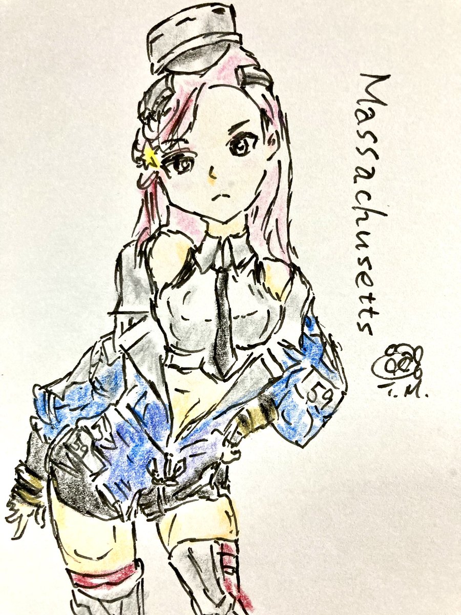 今日のマサチューセッツどんな子何だろう……って検索したら可愛すぎる!!!😭 勢いで描いてしまった。。 ほんとかわいい。。 #マサチューセッツ #艦これ版真剣お絵描き60分一本勝負_20220923 #艦これ版深夜の真剣お絵描き60分一本勝負