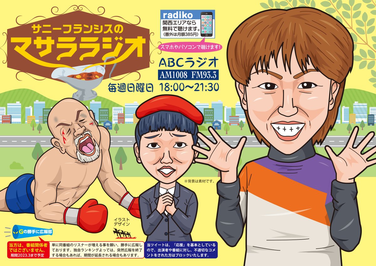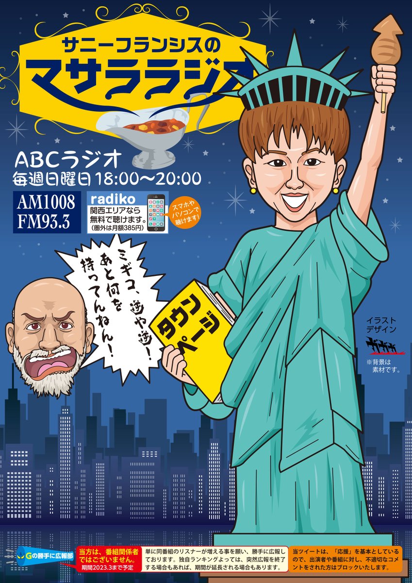 ABCラジオ、 #マサララジオ を勝手に広報中😀。放送は本日(日曜)18時から。尚、明日は岡山RSKラジオ「あもーれ!マッタリーノ」にサニーさんゲスト出演するということで…1回限定ですが、そちらの広報も準備してます💪。お楽しみに😁。 #絵描きさんと繋がりたい