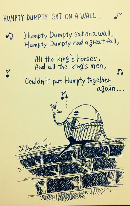 マザーグースより 『ハンプティ・ダンプティ』 今、久しぶりにちゃんと作品を描いているんだけど、疲れたので暇潰しにマザーグースを借りたら、描きたくなったってやーつ。 #ペン画 #マザーグース #ハンプティ・ダンプティ
