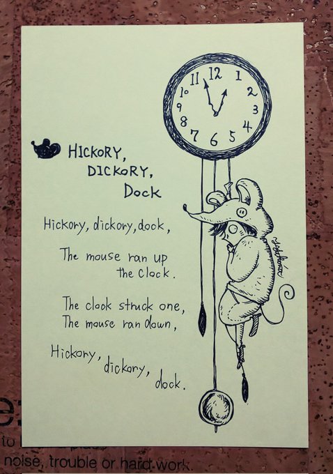 マザーグースより 「Hickory Dickory Dock」 数え唄的なものなのかと思います。 覚えやすいそうで、英国の子どもたちはみんな知っているんだとか! ちゃんと聴いてみたいなぁ。 #マザーグース #ペン画 #講談社 #mothergoose #monochrome #art #illustraion