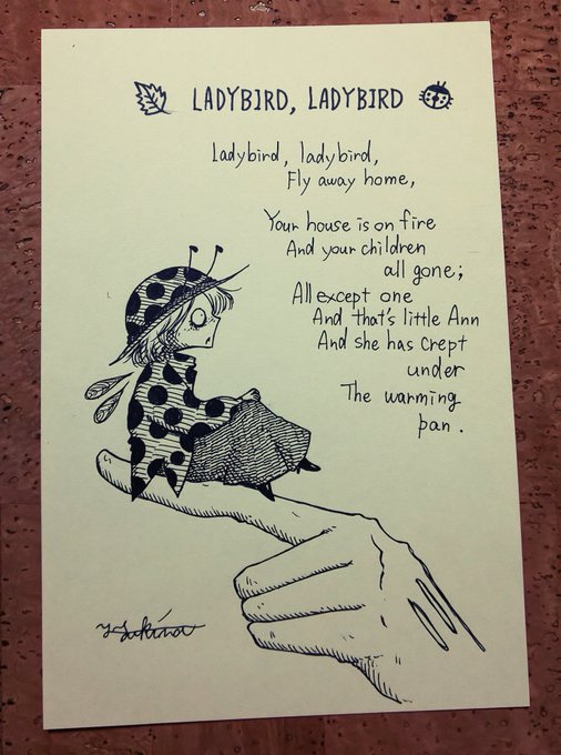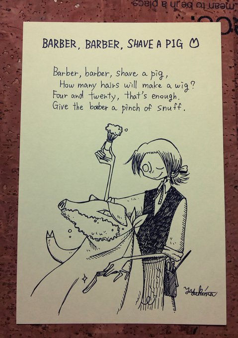 マザーグースより 「This little pig went to market」 子どもをあやす時に足の指でやる指遊び唄です。ちなみにアダムス・ファミリーでゴメズがウェンズデーに歌ってあげてる絵があるんですが、こぶたちゃんは一匹多いです。 #ペン画 #マザーグース #講談社 #mothergoose #art #illustration