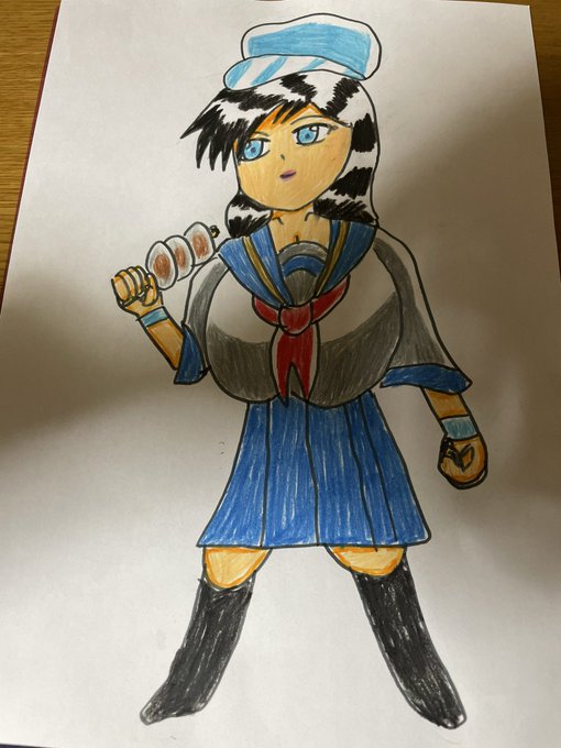 #一日一絵 #毎日絵一枚上げる #イラスト #色鉛筆画 #オリキャラ #イラスト好きな人と繋がりたい #絵描きさんと繋がりたい #マシュマロデー マシュマロ麻亜呂 マシュマロが好きなセーラー服女戦士 好物は焼きマシュマロでありおやつやバーベキューに食べるほどうまい