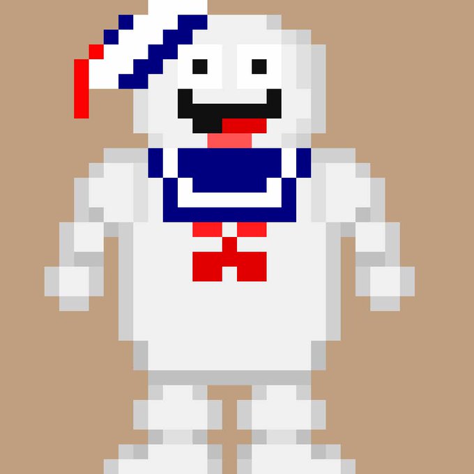 No.9 マシュマロマン 今日は妖怪ではなく、ゴースト(?)を! 今、映画で『ゴーストバスターズ』が上映されてますね😃昔、何回もみたから新しいのも観にいきたい✨ #どっとえひゃっきやこう #ドット絵 #pixelart #ゴーストバスターズ #マシュマロマン