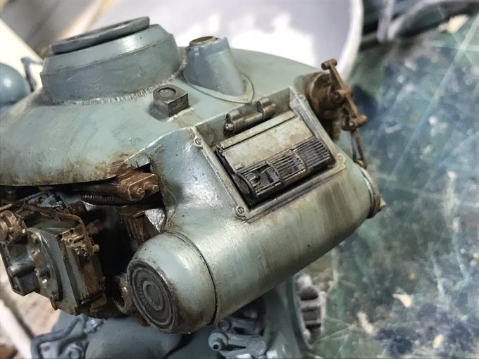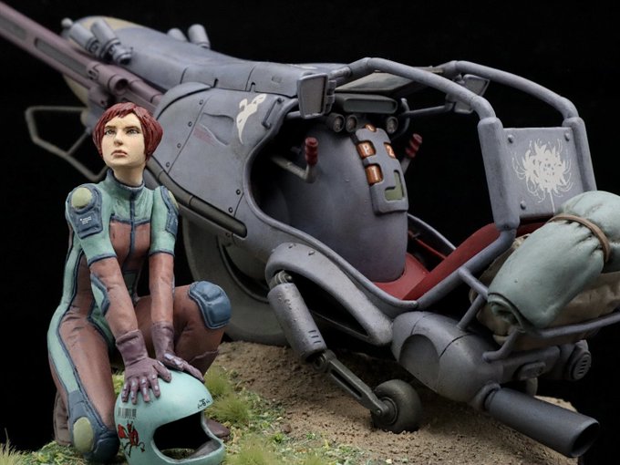 仮称「ラプター点検中」が完成しました。結局、裸足の季節フィギュアをやめてジルプラのウルバナに変更、その他ハッチ部分や梯子の形状変更など。これで一旦完成とします。年内はこれが最後の作品になると思います。 #マシーネン #マシーネンクリーガー #ラプター