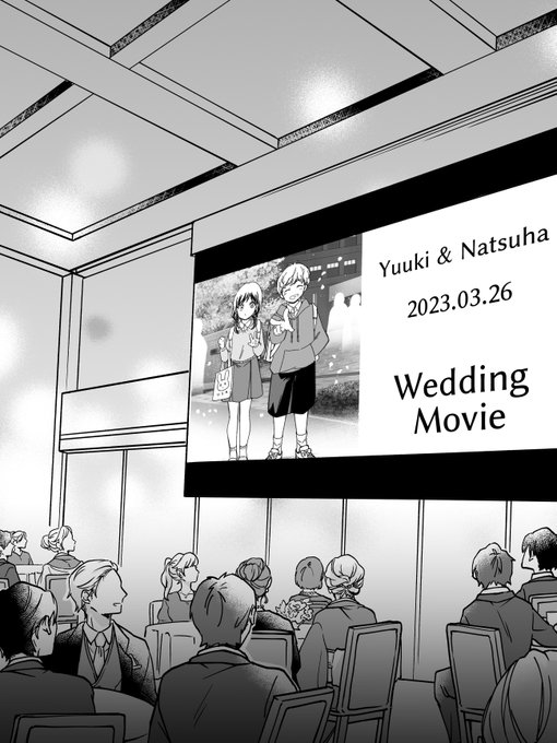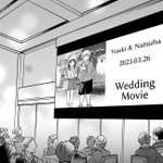 お色直しで主賓が退室したので、ふたりのなれそめムービーが始まりました!小さい時期の写真からふたりが隣にいるの、エモくてたまらんね😭 やはり幼なじみしか勝たん!!! #マジで結婚する15分前 #マジで付き合う15分前