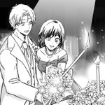 夏葉ちゃんお色直しして戻ってきました!青色のドレスでキャンドルサービス💘よく似合うね…(漫画の世界なのでカラーでお見せできなくて残念です🥲) #マジで結婚する15分前 #マジで付き合う15分前