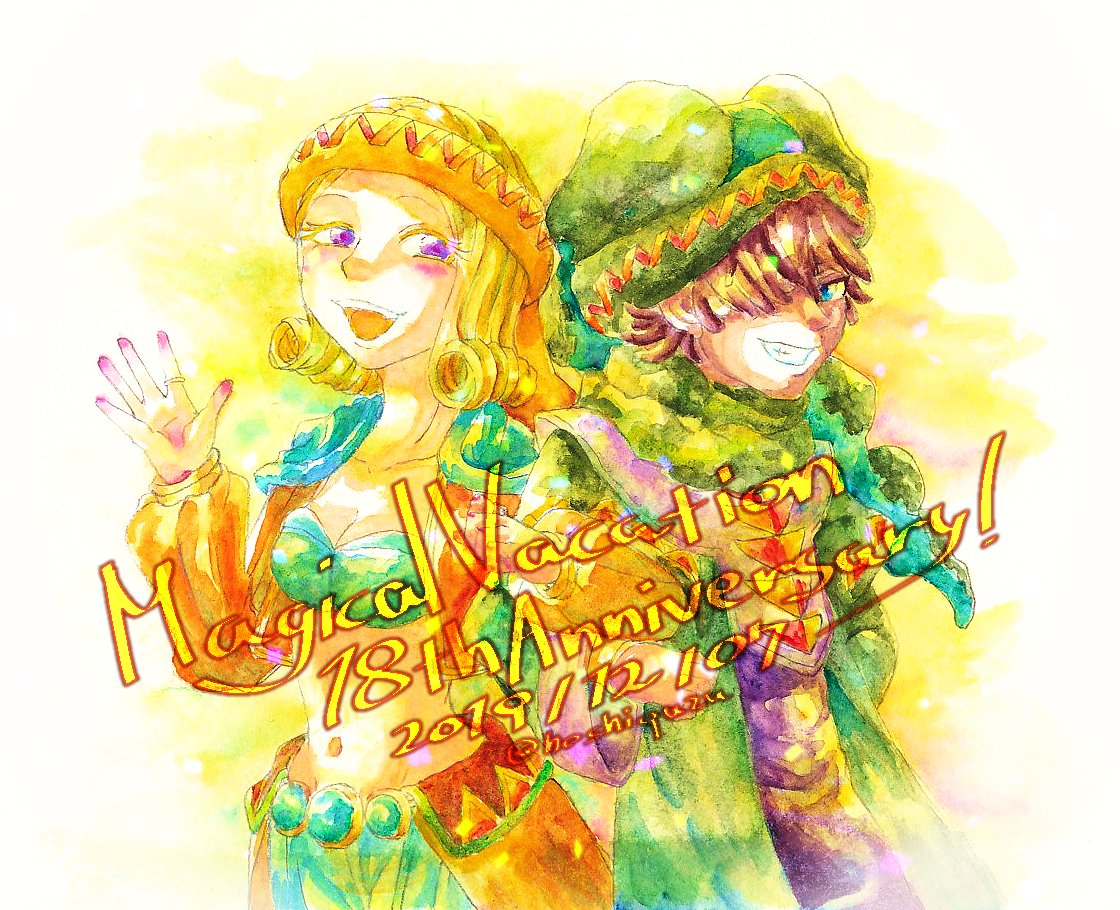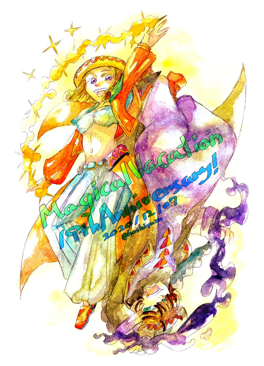 マジカルバケーション20周年おめでとうございます🎉 新規のお祝い絵が間に合いそうにないので、過去のお祝い絵を再掲しておきます。 出会った時から今まで心に残る、大切で大好きなゲームです。 #マジカルバケーション