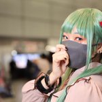 これは、昔話盛りのご飯にふりかけをかける(めかけられる)まくはりちゃん( @toritoeto )とふりかけちゃん( @mufcomet ) #マジカルミライ10th幕張 #マジカルミライ10thコスプレ