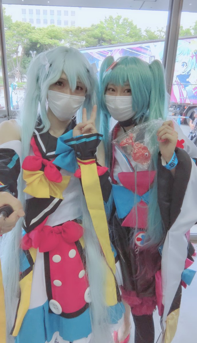思わず発見したふりかけちゃん、わたし以外にいることに興奮してナンパしたらフォロワーさんでした!! めっかわふりかけちゃんありがとう🙏🙏🙏 #マジカルミライ10th幕張 #マジカルミライ10th #マジカルミライ10tコスプレ