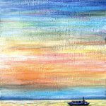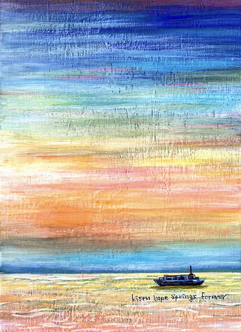 はなむけ-あなたに贈る- to celebrate new your life #水彩画 #水彩画アート #waterpainting #waterpaint #waterpaintingart #drawing #アクリルガッシュ #acrylicpainting #acrylicart #夕焼け #空 #海 #マジックアワー #霧 #船 #sunset #sky #sea #magichour #foggy #ship