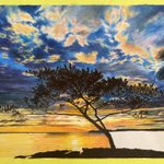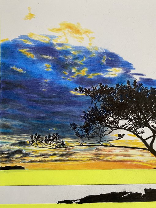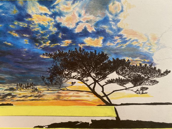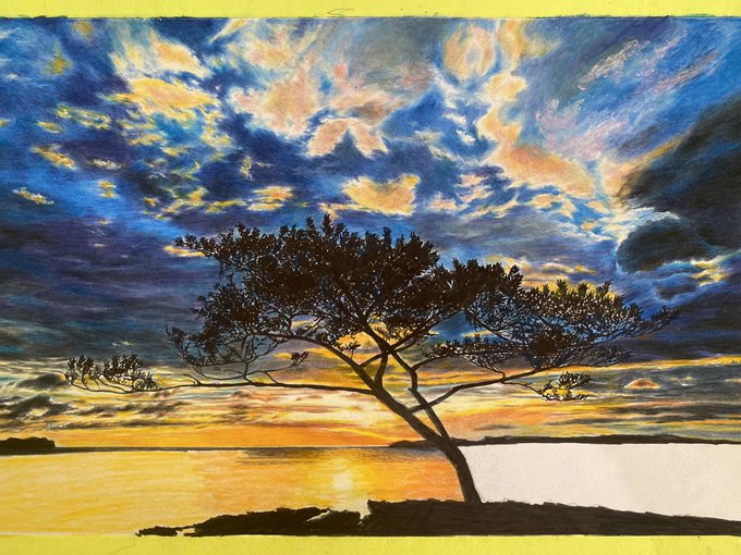 夕暮れ制作過程。 木のとこはサインペン、あとは色鉛筆です。 #夕暮れ #マジックアワー #色鉛筆 #illustration #Illustrations #illustrationart #art