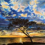 山口県萩市の夕暮れ完成。 海全部点描したので発狂しました😨 #萩市 #夕暮れ #夕陽 #トワイライト #マジックアワー #色鉛筆 #illustration #illustrationart #illustrations #art