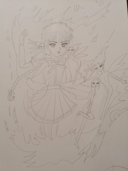 風ちゃん、海ちゃんと描いてきたけど、この光…一番似てない…😱もっと優しい表情で描けたらよかったな🥺あ、はじっこにモコナ描こうと思ってたけど忘れてた😅 #魔法騎士レイアース #マジックナイトレイアース #CLAMP #イラスト好きさんとつながりたい #作品展示会