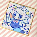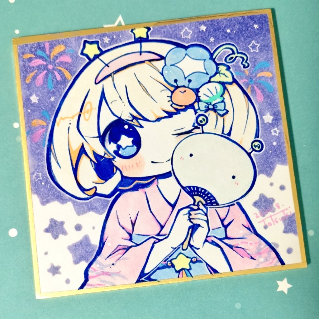 【花と共に】 アクリル板作品です。本物のドライフラワーを挟んでいます🏵 お好きなドライフラワーに変えることも可能なので、お好きな花と共に楽しんでいただけたら、という想いで制作しました。 #SmallMegru #ミニ原画 #みんなで楽しむTwitter展覧会 #アクリル板 #マジックマーカーイラスト
