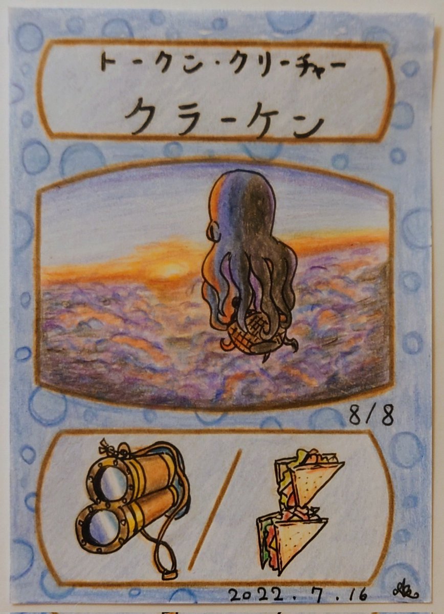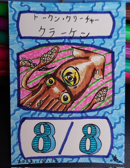 今日の一枚 (塗り終え日 2022年8月11日) 写真ちょっと暗い…。 #クラーケン #朝日 #MTG #マジックザギャザリング #マジック・ザ・ギャザリング #トークンメーカー #らくがき #色鉛筆イラスト