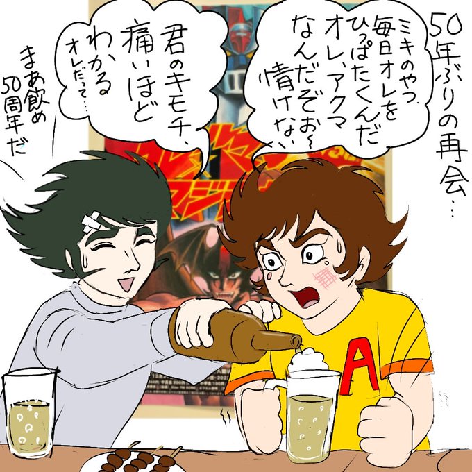 #マジンガーZ50周年 おはようございます(^o^)/ 兜甲児くんと不動明くんのつもりで描いてみました。 カッコよく描きたかったのに…( ×ω× ;)💧 飲酒運転はやめてね。 寒くなりましたが、良い週末を……(^~^;) 水木一郎さん、ご快復祈願😭🙏🙏🙏🙏🙏