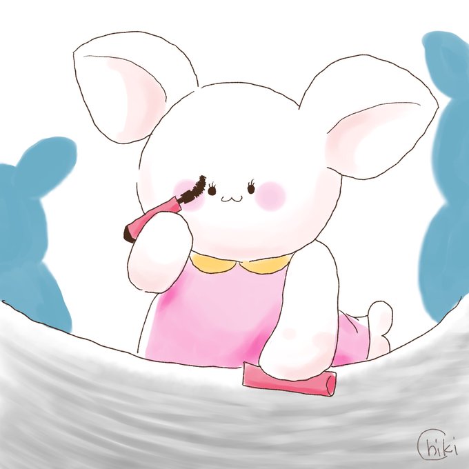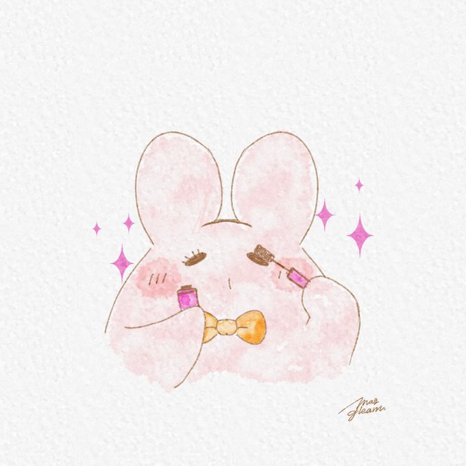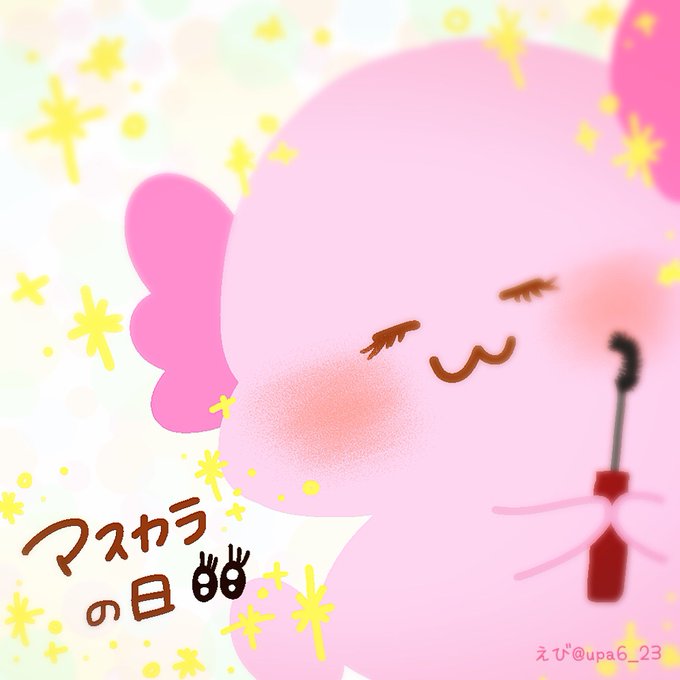 えびわんカラーのピンクベージュなマスカラで、 おめめがふわキラぱっちり!🥟✨ #ゆるいイラスト #イラスト #illustration #illustrations #ギョザー #わんたそ #マスカラの日