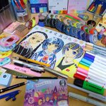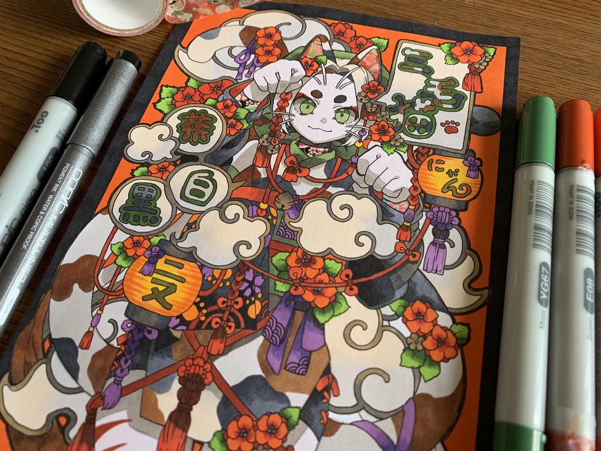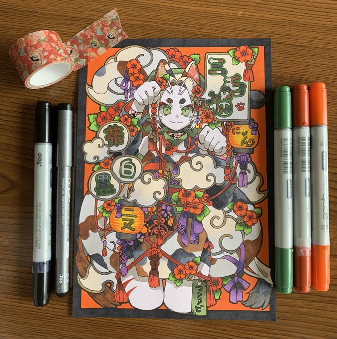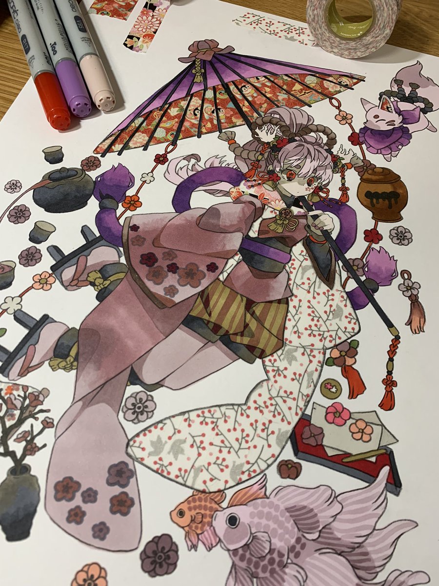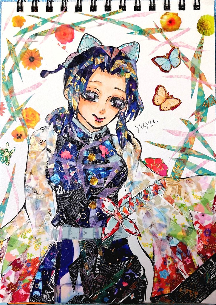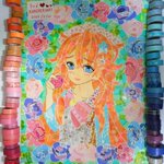 るーさん(@rascala39)の線画をマスキングテープで塗ってみました! ちえりちゃんの表情が最高に可愛い😊 背景は桜をイメージして描きました #花京院ちえり #ちぇり絵 #イラスト #絵描きさんと繋がりたい #イラスト好きな人と繋がりたい #マスキングテープ #マステ #マステ絵