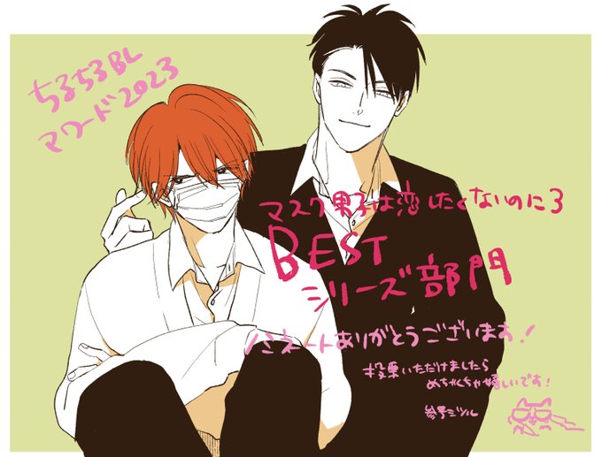 🧸#ちるちるBLアワード2023🧸 「#マスク男子は恋したくないのに 3」 BESTシリーズ部門にノミネートしていただきました🎊 ありがとうございます😳✨ 締切:2/5(日) お気軽に投票いただけましたら嬉しいです☺️ ☞chil-chil.net/blAwardNominat…
