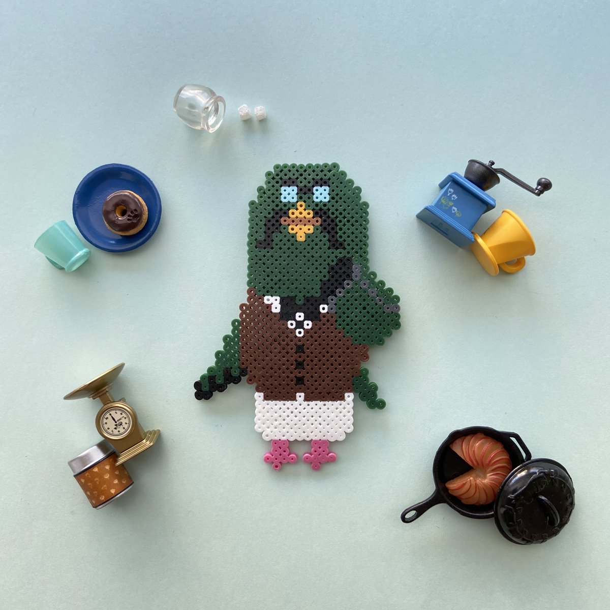 大型アップデートまであと1週間程。 大好きなマスターの登場が待ち遠しくてアイロンビーズで作ってみた! #あつまれどうぶつの森 #あつ森 #AnimalCrossing #アイロンビーズ #ドット絵 #pixelart #マスター #perlerbeads