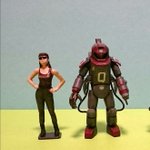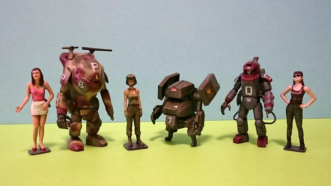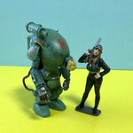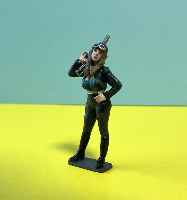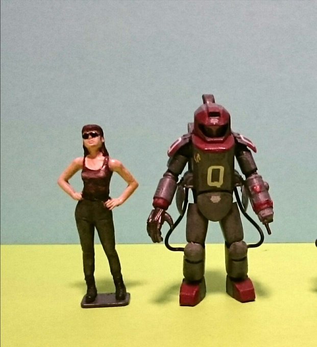#マスターボックス のデザートバトルシリーズ ドクロ一族 死の天使👼✝️・・長いなぁ😅 女スナイパー完成です ボウガン持ってるのを未来銃にアレンジ 体型も好みでグラマーにしました😚 #ガチャーネン とツーショット 残りのおねいさんはまた今度作ります😁 #マシーネンクリーガー