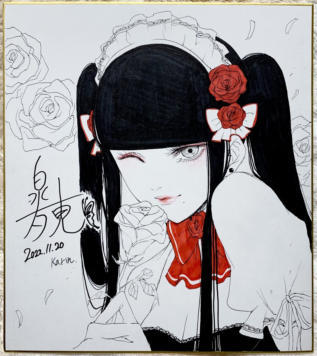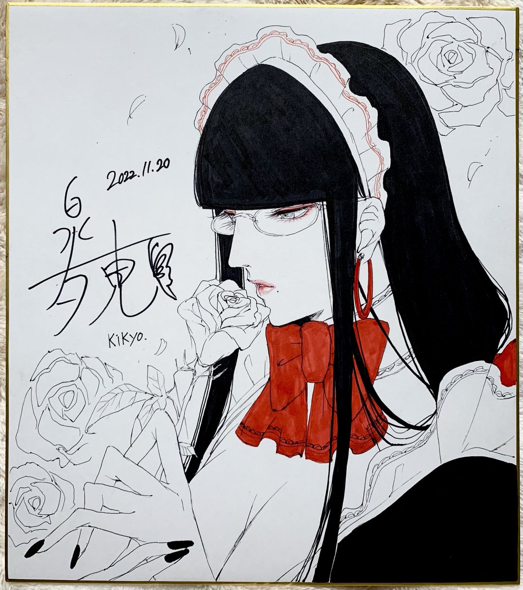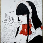 【お知らせ】 明日(11月22日)開店時より、サイン入り色紙を販売いたします。 黒髪ぱっつん刺青入りのメイドさんの、桔梗、紫苑、樺凜の3人のイラストとなります🥀 ご興味のある方は是非お越しください.。゚ #マゼルナキケン展 11/17(木)~29(火) 西武池袋本店3階(南B10) acgateway.com/ex_mk3/ twitter.com/kuroe16370547/…